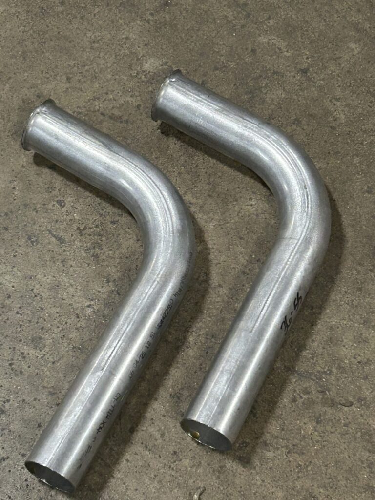Mandrel Bending from 1 inch to 6 inch diameter round tube, primarily in aluminized steel, 409 and 304 stainless steel.